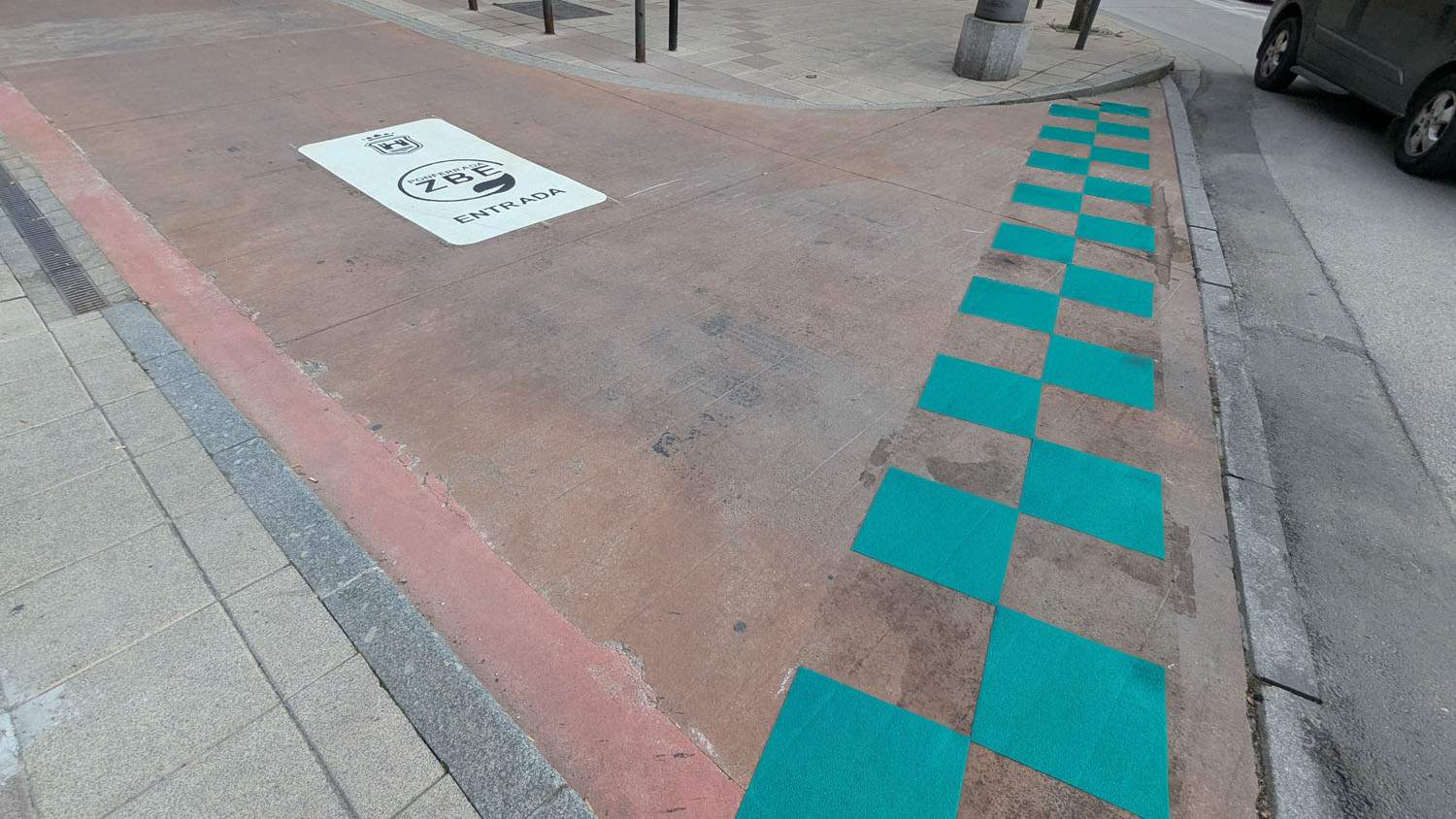 La primera remesa de señalización vertical se complementa ahora con la señalización horizontal. Es decir, la identificación viaria en las calles para informar a los conductores en los accesos a la ZBE, y pintura verde que identifica el perímetro acotado.