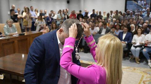 La sesión plenaria, que ha discurrido sin incidentes, sí ha dejado algunos momentos a destacar. El primero de ellos cuando Iván Alonso, portavoz de Coalición por El Bierzo, y exsocio del PSOE, ha jurado su cargo y antes de recibir la medalla de plata de la corporación, ha dado la mano a Carmen Doel, edil socialista, que le ha respondido con un gesto serio. Doel ha sido la presidenta de la sesión como integrante de mayor edad de la corporación.