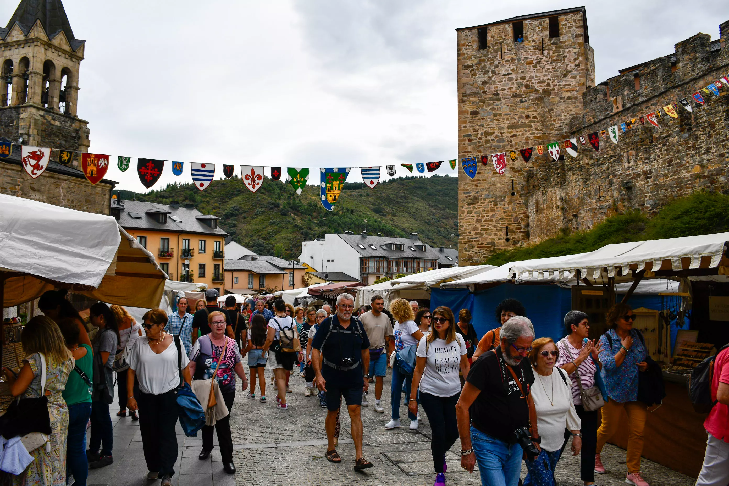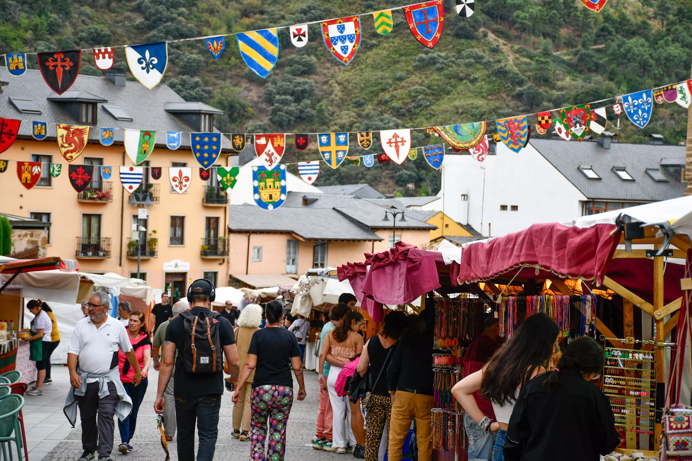 El tradicional Mercado Medieval de Ponferrada ya ha arrancado en estas Fiestas de La Encina con el que inundará la ciudad del toque de tradición y artesanía tan característico. Los visitantes ya pueden disfrutar de las degustaciones gastronómicas de diferentes productos como quesos, encurtidos por supuesto dulces como tartas o bizcochos, y por supuesto no faltan a esta cita los puestos de diferentes objetos medievales y de decoración.