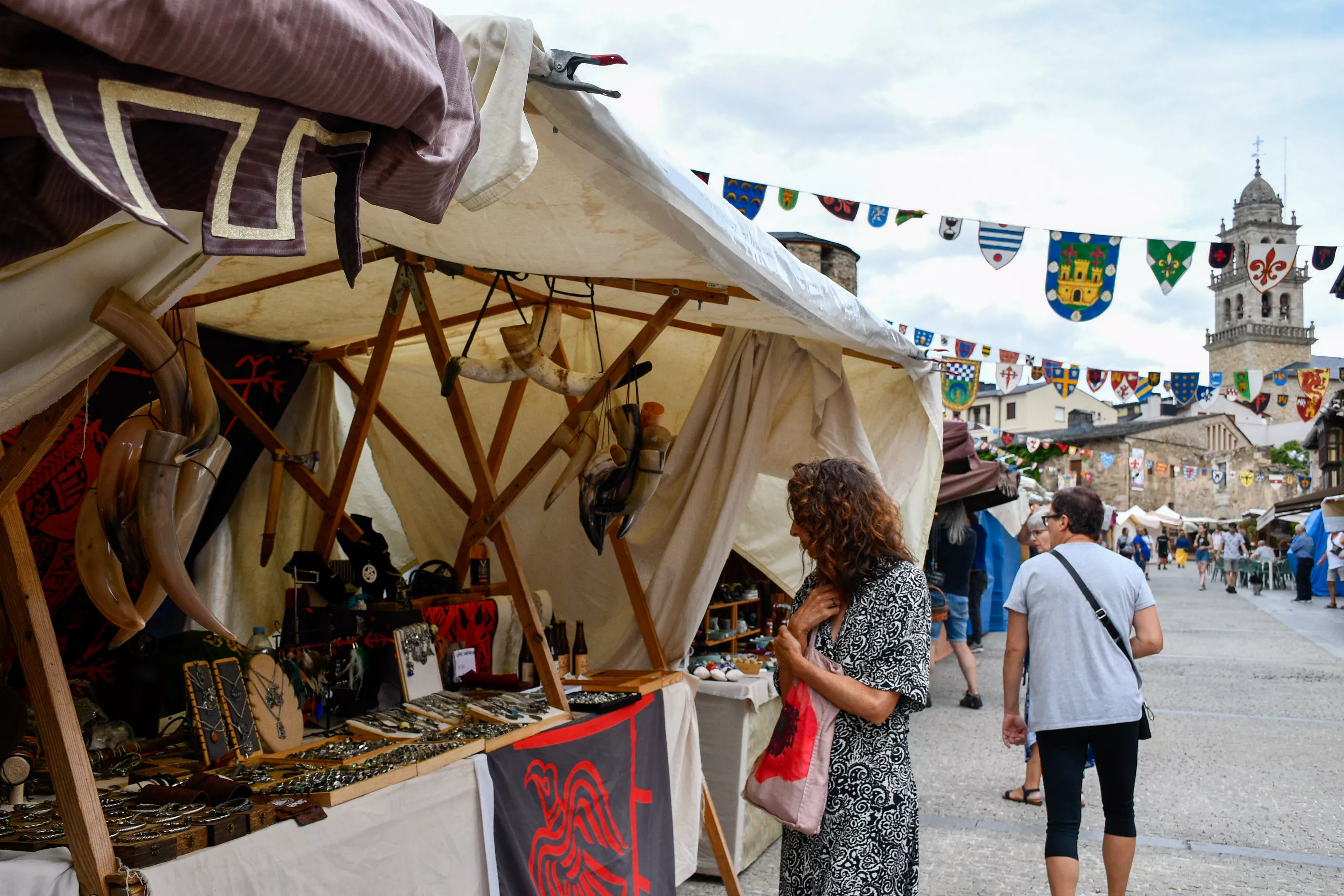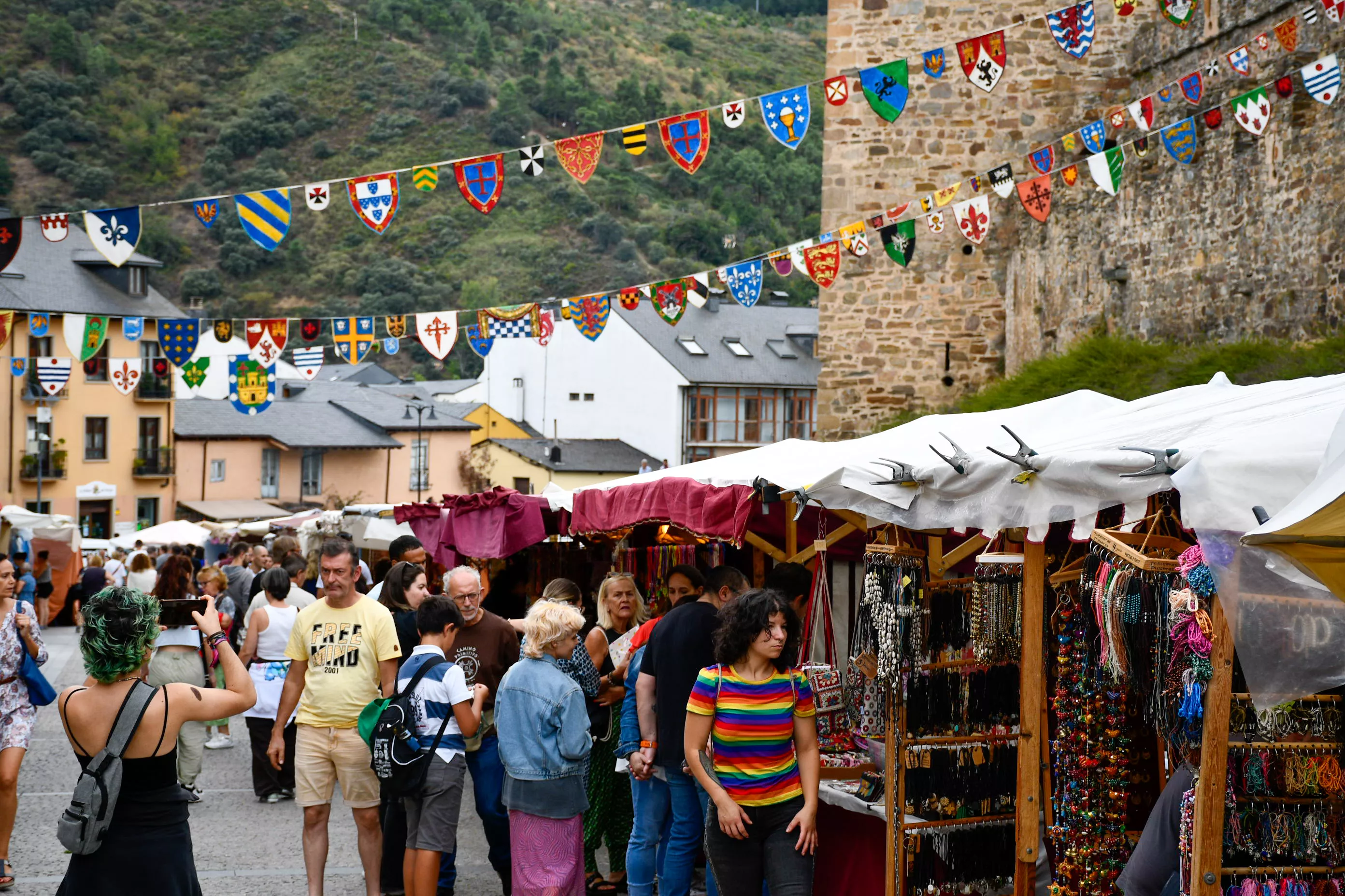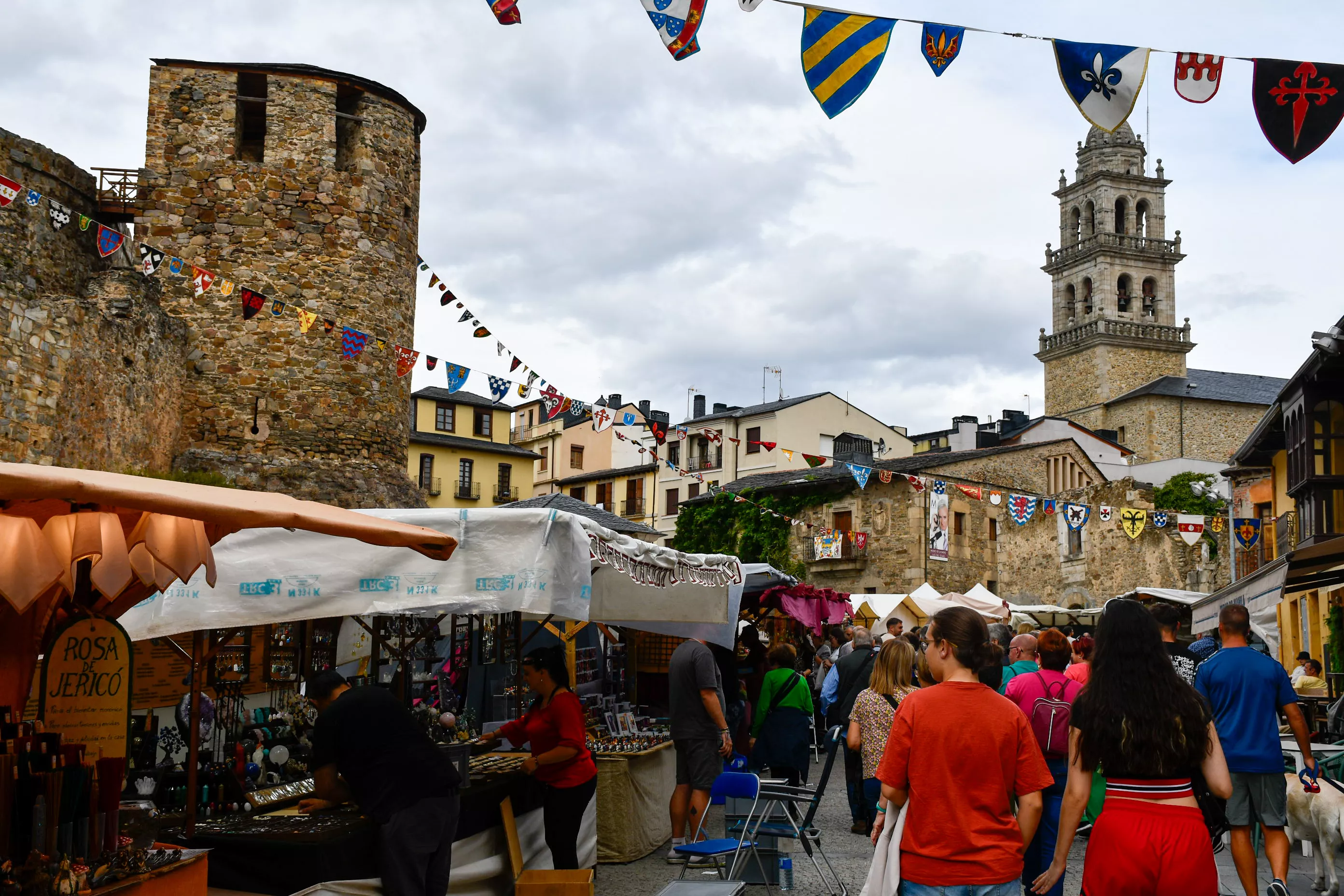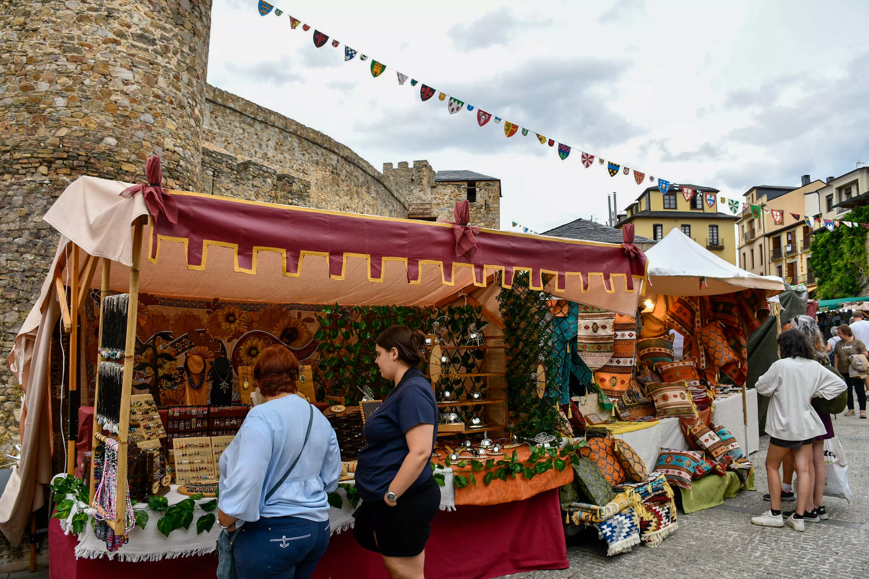 El Mercado Medieval de Ponferrada ya ha dado el pistoletazo de salida este martes. En esta ya tradicional cita los visitantes podrán disfrutar de los puestos dedicados a los clásicos gastronómicos como quesos, embutidos, además de varios objetos de decoración, bisutería y cosmética natural entre otros.