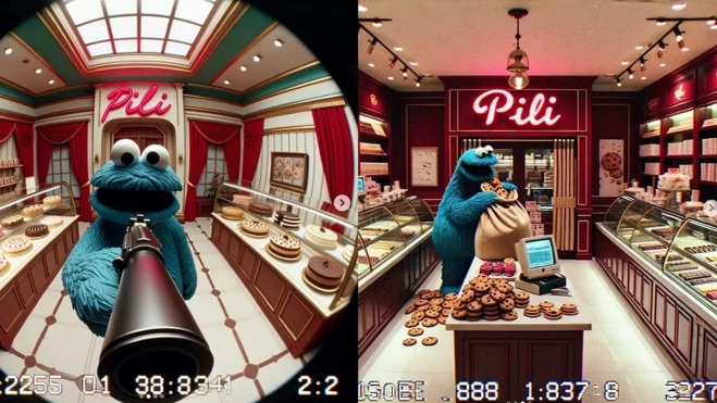 La cuenta de instagram de Inteligencia Artificial ponferrad.ai vuelve a sorprendernos con una nueva creación centrada en la tradicional Confitería Pili de Ponferrada. Fantasía y realidad se entremezclan en varias imágenes en las que el Monstruo de las Galletas atraca el establecimiento en busca del preciado manjar.
