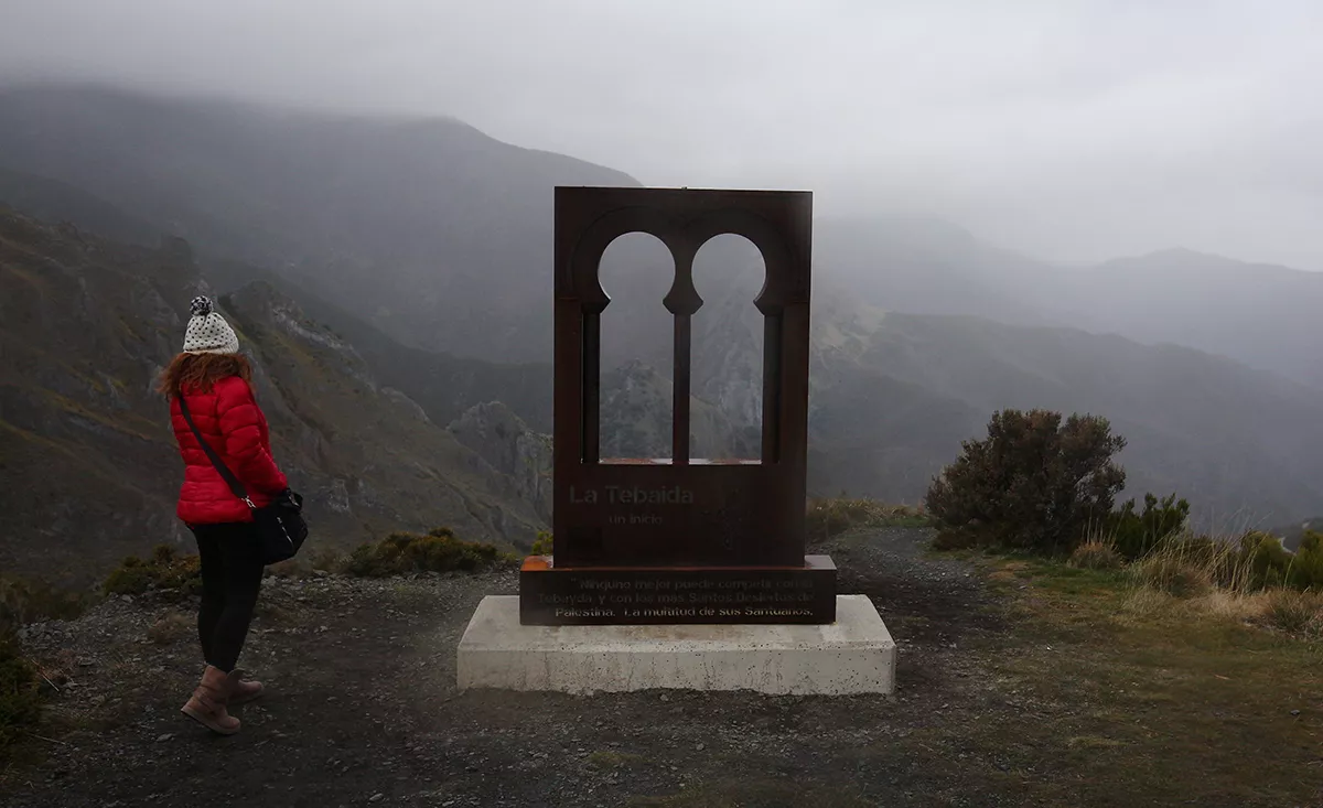 El mirador, en el que se ha instalado un banco, rinde homenaje a la Tebaida y recoge parte de una cita del Padre Flóre en su obra España Sagrada dice textualmente: "Ninguno mejor puede competir con la Tebayda y con los más Santos Desiertos de Palestina. La multitud de Santuarios, la santidad de Eremitorios, los muchos Anacoretas, los Monges que sobresalieron en victorias del mundo, solo podrá contarlos el que sabe las estrellas del Cielo".