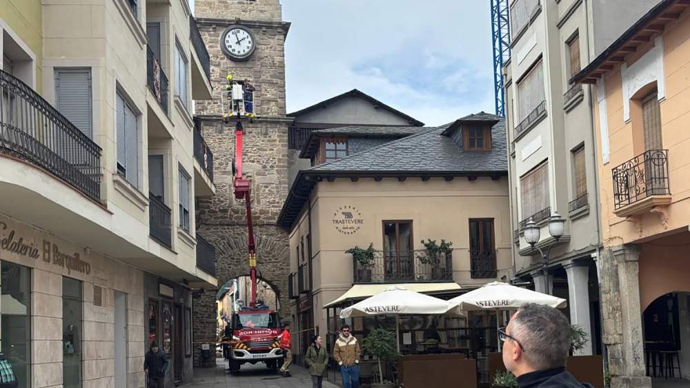 El Ayuntamiento de Ponferrada pone en servicio la esfera de la Torre del Reloj que apunta a la plaza del Ayuntamiento. Si el pasado mes de febrero, el equipo de Gobierno reparaba la esfera que 'mirada' a la Basílica de La Encina, en esta ocasión ha sido la otra la que se ha sometido a las actuaciones pertinentes para su puesta a punto.