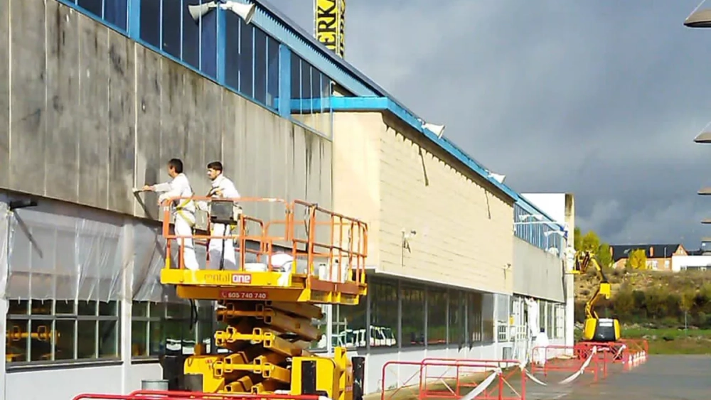 La intervención consistirá, principalmente, en la reparación de grietas y desconchones del hormigón, además de pintar esas fachadas con el color azul corporativo de la Sociedad Deportiva Ponferradina.