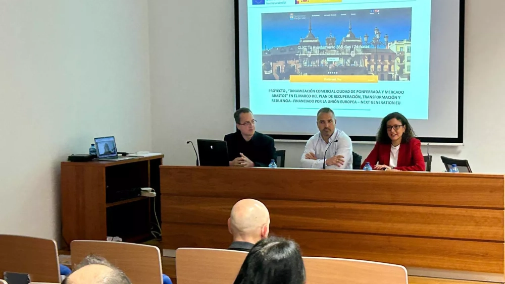 El concejal de Desarrollo Económico e Industrial, Comercio, Innovación y Escuela Taller, David Pacios; y la concejala de Presidencia, Relaciones Institucionales, Fondos Europeos, Transparencia y Fomento, Lidia Coca; se han reunido a primera hora de esta mañana con las asociaciones de comercio para presentar el plan de marketing digital del Ayuntamiento de Ponferrada.