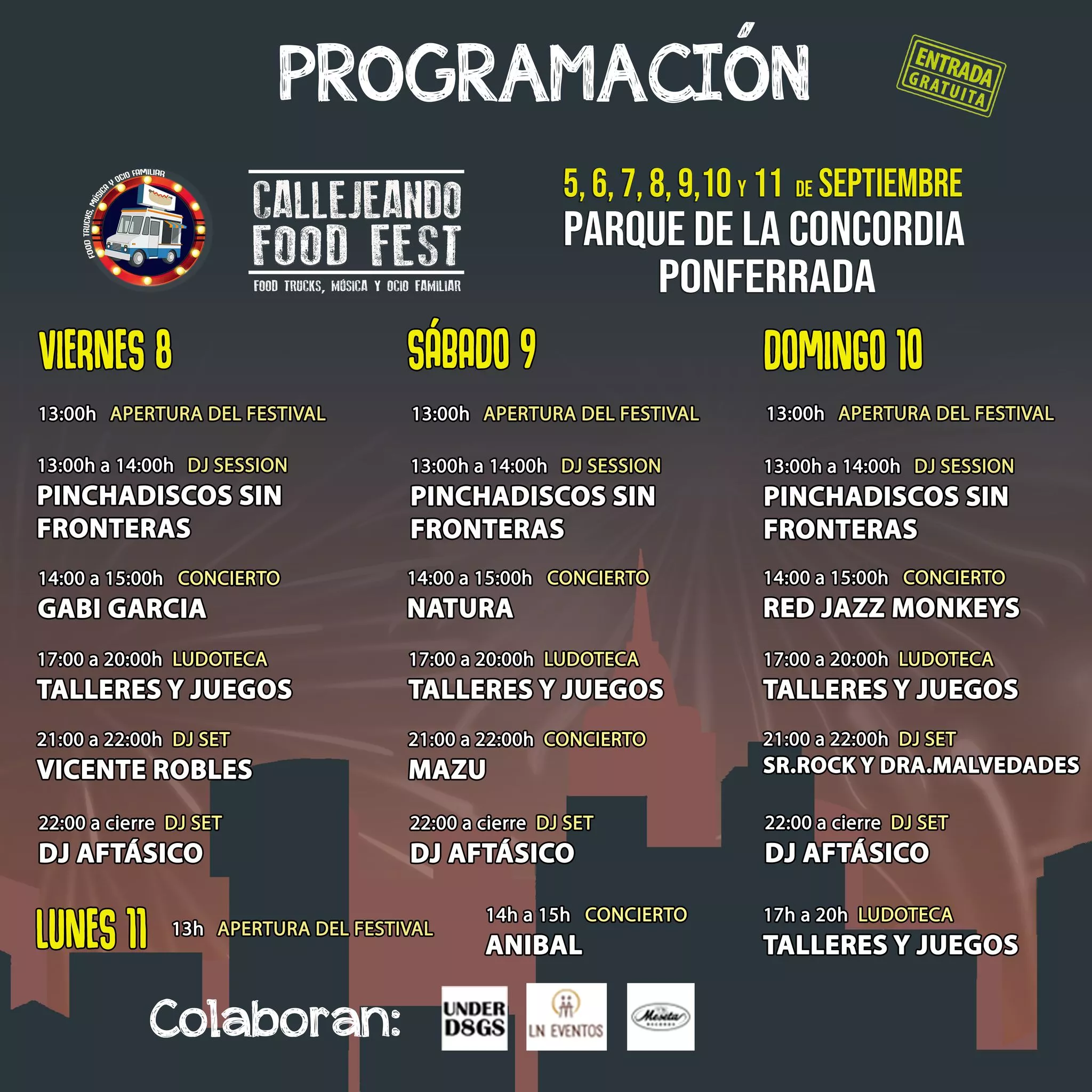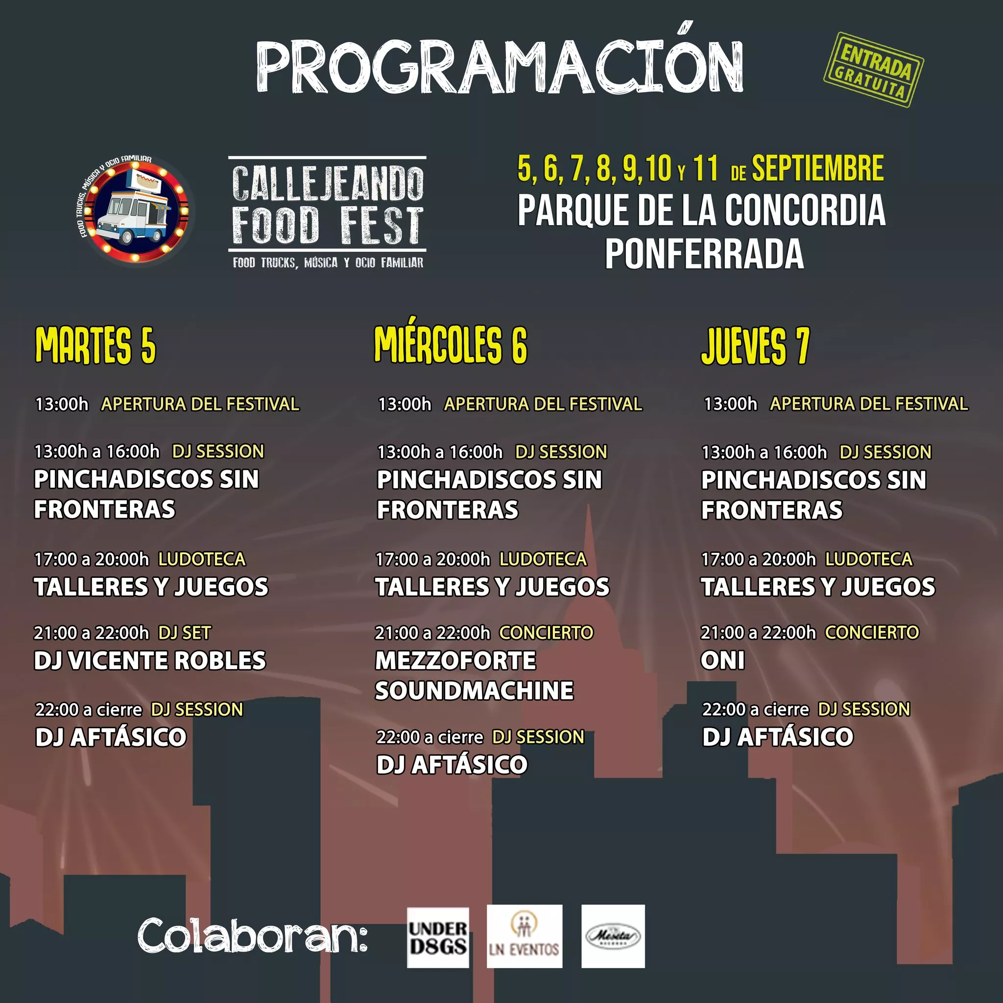 Los ponferradinos ya pueden abrir apetito desde este martes en 'Callejeando Food Fest'. Las furgonetas y camionetas ya han dado el pistoletazo de salida a esta cita gastronómica desde este martes a las 13:00 horas. Todo el que se acerque a esta cita ya tradicional de las Fiestas de La Encina, no sólo disfrutará de las apuestas gastronómicas, sino que además la música en directo animará el ambiente desde este martes hasta el 11 de Septiembre.