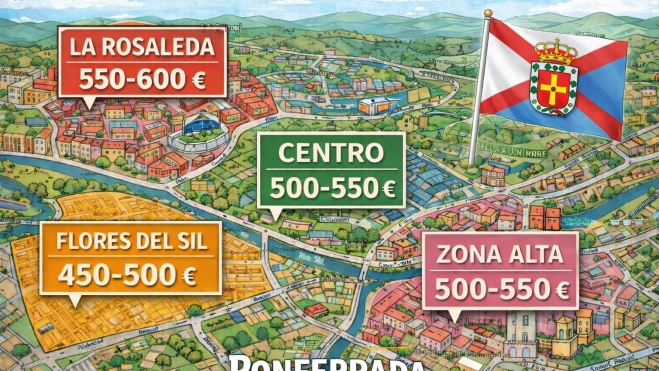 A modo comparativo, antes estos valores medios eran cercanos a los 400 euros mensuales para toda Ponferrada; hoy han subido hasta situarse alrededor de los 550 euros por vivienda.