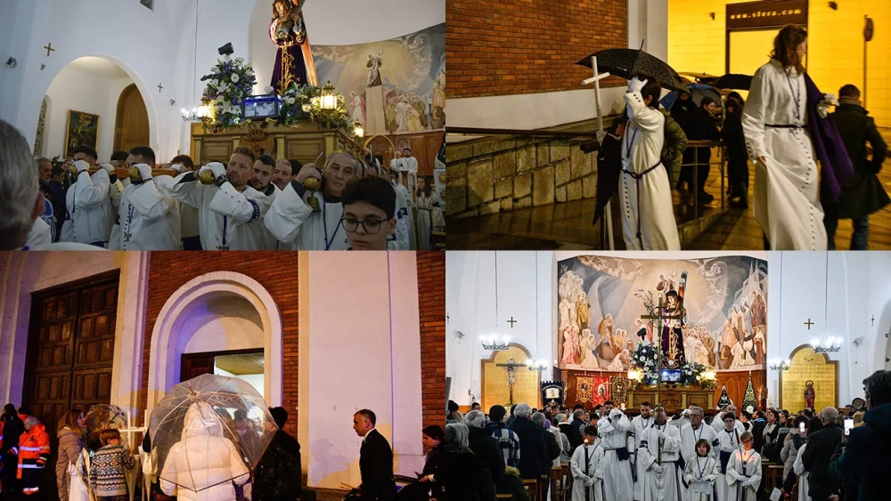 Esta vez no pudo ser. La lluvia, que había dado una tregua a las procesiones previas de la Semana Santa de Ponferrada, ha impedido que este miércoles, la más solemne, la del Silencio, recorra las calles de la capital berciana. El acto, impedido por los chubascos, se ha limitado a la representación de tres estaciones de penitencia en el interior de la Iglesia de San Pedro.