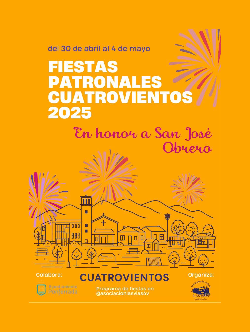 El barrio ponferradino de Cuatrovientos ya tiene todo preparado para la celebración de sus fiestas en honor a San José Obrero, que tendrán lugar entre el 30 de abril y el 4 de mayo, con un programa diseñado por la Asociación de Vecinos "Las Vías Cuatrovientos" que incluye una amplia variedad de actividades, donde destaca la música y los eventos solidarios.