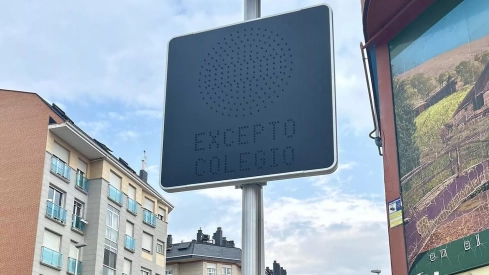 "Se ha instalado una 'SEÑAL GIGANTE' cuyo concepto 'EXCEPTO COLEGIO', prohíbe el acceso a todos los vehículos no vinculados con el centro, exclusivamente en las franjas horarias de entrada y salida de los alumnos". El horario para acceder a la zona es de 08:45 a 09:05 horas y de 13:55 a 14:15.