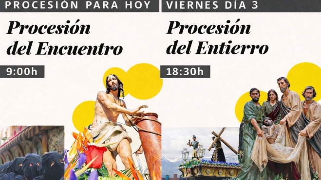 Ponferrada vivirá este Viernes Santo una de las jornadas más intensas y emotivas de su Semana Santa con la celebración de dos de sus procesiones más solemnes y multitudinarias: la Procesión del Encuentro por la mañana y la Procesión del Santo Entierro por la tarde.