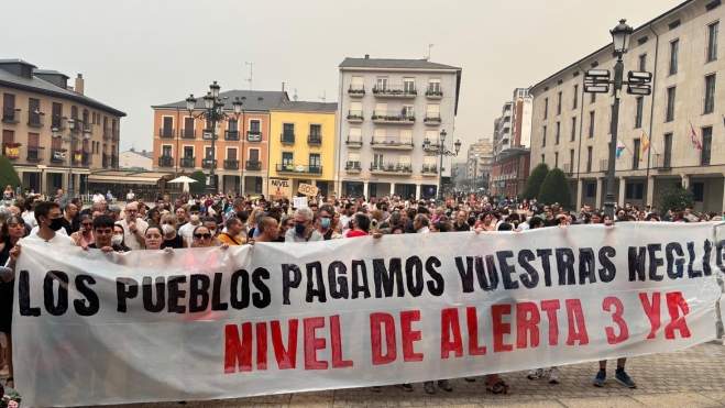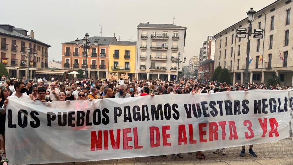 Una manifestación convocada este mismo sábado por redes sociales en Ponferrada reclamó la declaración del nivel 3 de emergencia por los incendios que sufre la comarca del Bierzo.
