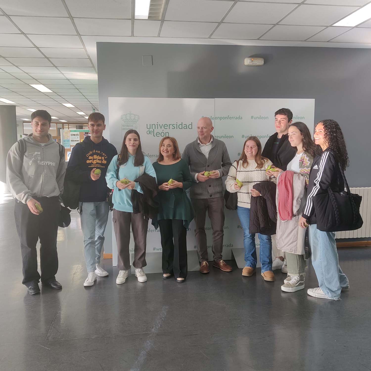 En el campus de Ponferrada se repartieron peras Conferencia donadas por Alimentos de Calidad del Bierzo. Pilar Marqués, vicerrectora del campus de Ponferrada, destacó que “estas intervenciones parten de la Universidad de León como miembro de la Red Española de Universidades Promotoras de la salud” y que “una de las etiquetas que tenemos, que nos define, es campus saludable, no solo por los grados, sino también por los hábitos” y, a juzgar por lo rápido que se acabaron las peras, aseguró Marqués, “nuestros estudiantes son de hábitos muy saludables”.