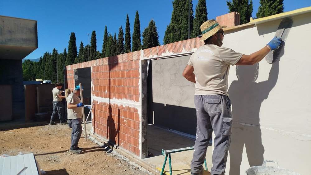 Desde el PPMEF Ponsferrata II de albañilería se ha construido un muro de hormigón de 11 metros de largo y 90 cm de altura para el cierre de la parcela. Por la parte interior se ejecutó un zuncho de hormigón sobre el que se asentó la construcción, que ocupa 25 m². La misma se ha hecho con bloques de termoarcilla con un acabado interior a base de enfoscado y doble capa de pintura. En el exterior, los alumnos revestirán la fachada con mortero monocapa raspado, por ser un revestimiento duradero y que protege las paredes contra los agentes atmosféricos, teniendo un resultado final muy decorativo. El trabajo exterior también se complementará con una acera delantera con sumideros y arquetas para la recogida de las aguas pluviales.