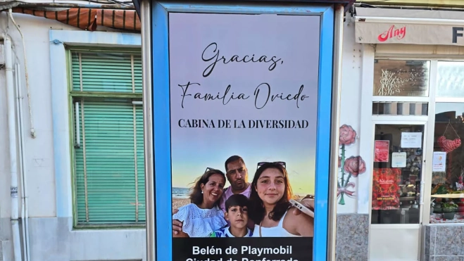 La plataforma social Mundo Eduso, con la colaboración de la plataforma social Sueños de Vecinos de Flores del sil, han dedicado una 'cabina de la diversidad' a la familia Oviedo por su "compromiso desinteresado por la cultura, la alegria de las familias y sobretodo de la felicidad de los mas pequeños, con su Belén de Playmobil".