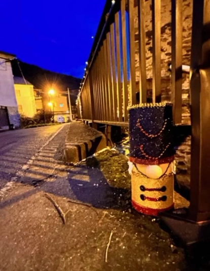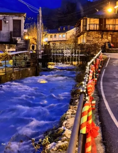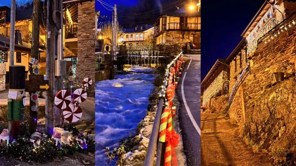 La iniciativa vecinal de este pueblo del Valle del Oza ha recuperado la ilusión por la Navidad gracias a sus adornos un año más. Una llamativa decoración que implanta nuevas mejoras cada año y que esconde entre las calles del pueblo diversas sorpresas como enanitos de madera, renos, soldaditos navideños y el curso del río convertido en una espectacular vía de 'piruletas' que también cuenta con la presencia de Papá Noel, y pro supuesto su trineo tirado por renos junto al Oza, en el parque del pueblo.