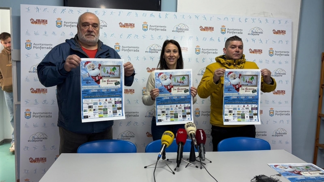 El Ayuntamiento de Ponferrada ha presentado este jueves la carrera popular 'San Silvestrín', que se celebrará en Dehesas este domingo, 5 de enero. Una cita deportiva que va más allá, tratándose de un "día de convivencia", apunta la concejala de Deportes de la capital berciana, Eva González.
