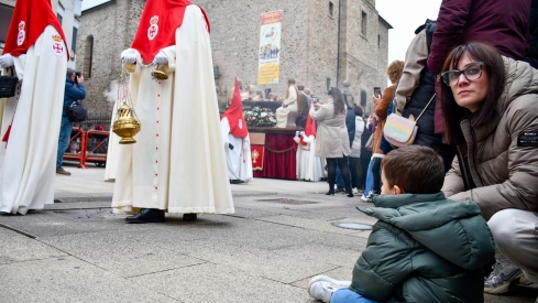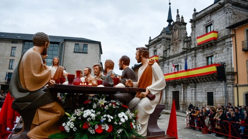Las calles del Casco Antiguo de Ponferrada acogieron este jueves la Procesión de la Santa Cena, una tradición que, desde el año 2013, se completa con la celebración del Acto del Amor Fraterno y que, este año, también ha contado con el indulto a un reo, la liberación de un recluso de la prisión de Mansilla que cumplía "sus últimos años".