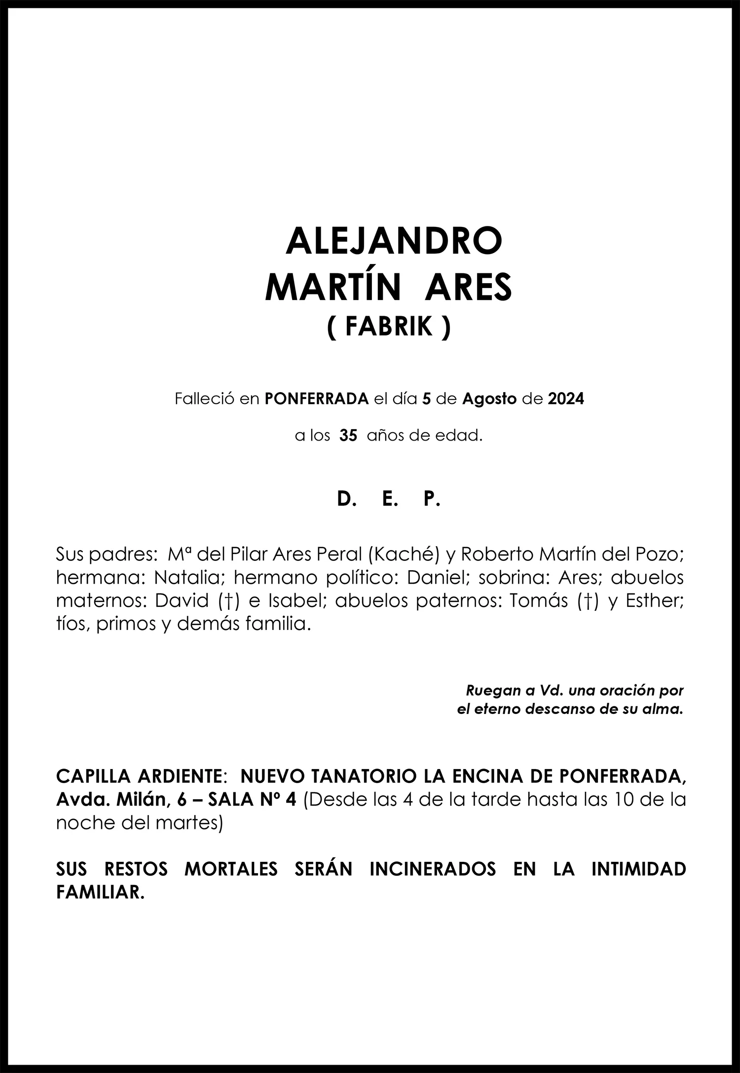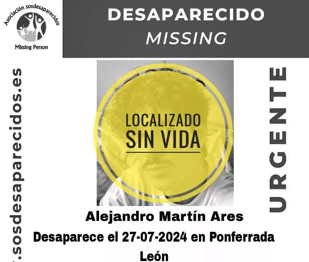 "A día de hoy, 5 de agosto de 2024, se nos ha comunicado a primera hora de la mañana la peor de las noticias y la menos deseada, que se ha encontrado el cuerpo de Alejandro sin vida. En este momento hay dos deseos por parte de la familia.