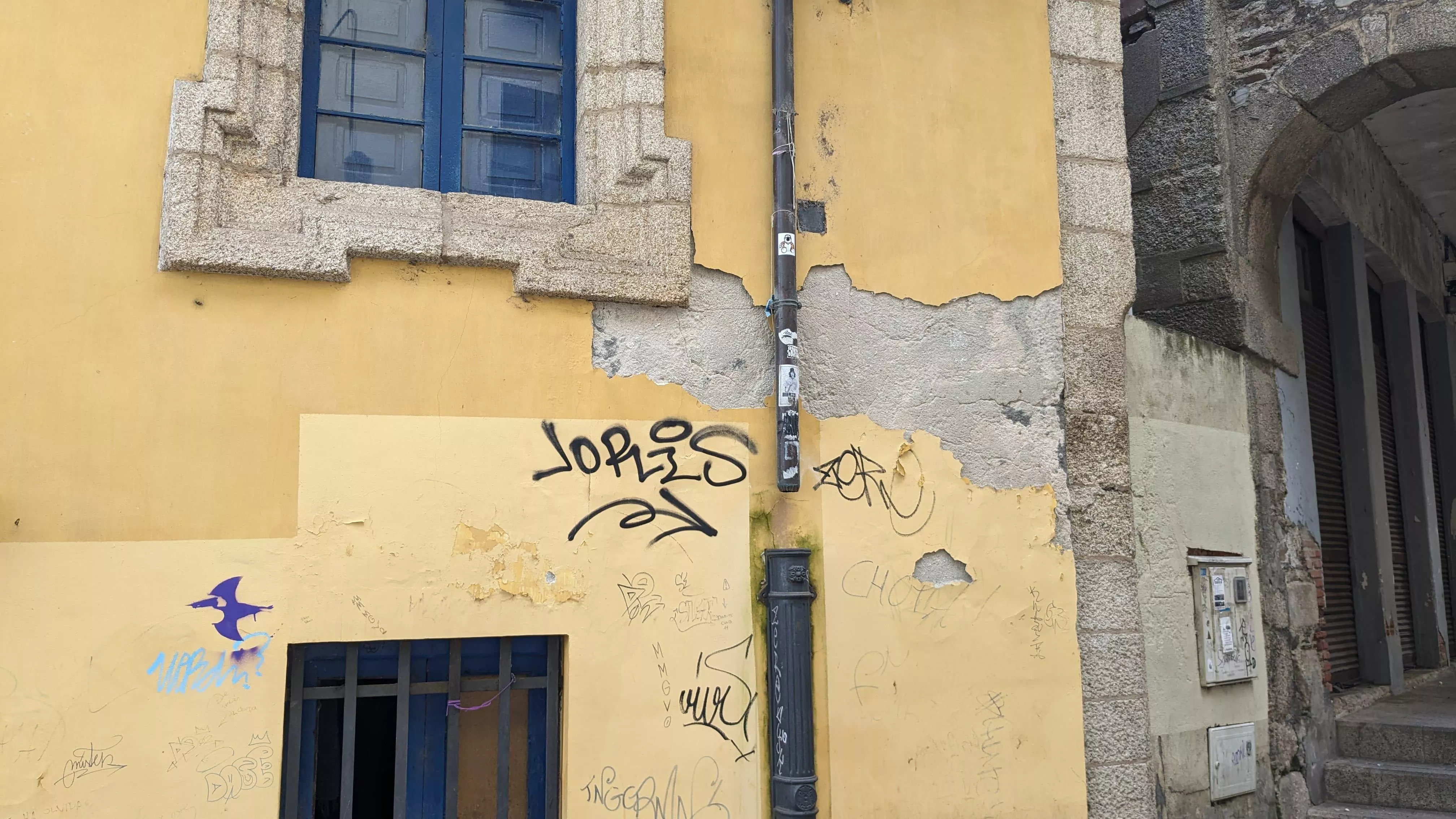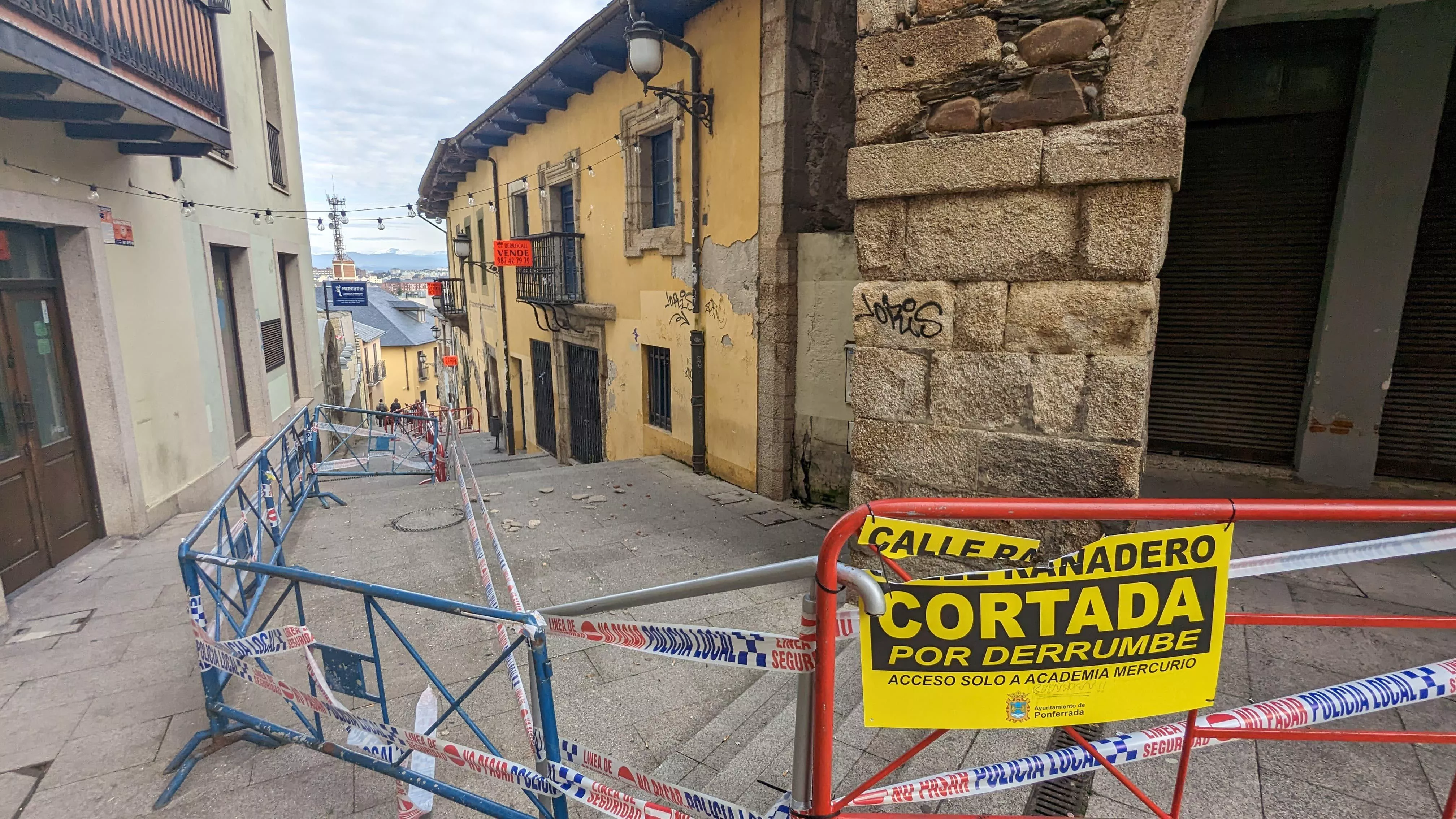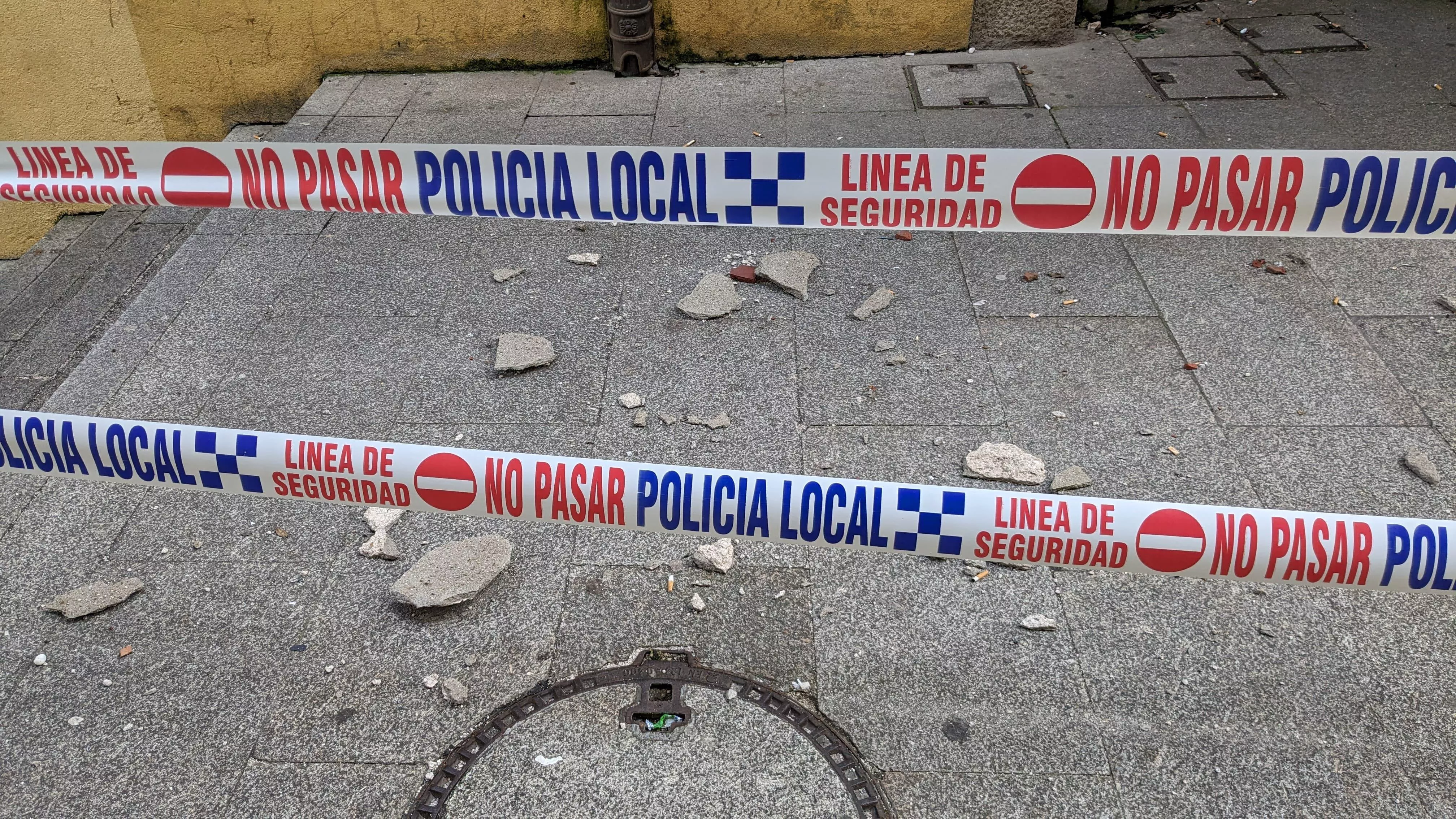Ahora la zona se encuentra acordonada por el desprendimiento de cascotes de las fachadas de estos y otros edificios de la calle del Rañadero.