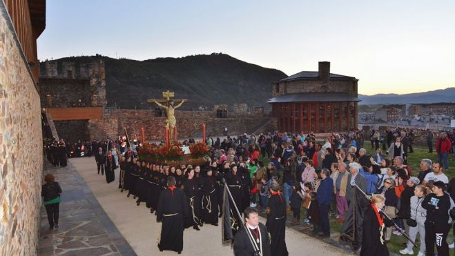 El cambio en la meteorología comienza a hacer mella en la Semana Santa de Ponferrada. El primer acto en sufrir estas consecuencias es el Viacrucis Penitencial en el Castillo de los Templarios que, debido a las precipitaciones, cambia su habitual ubicación para su celebración.