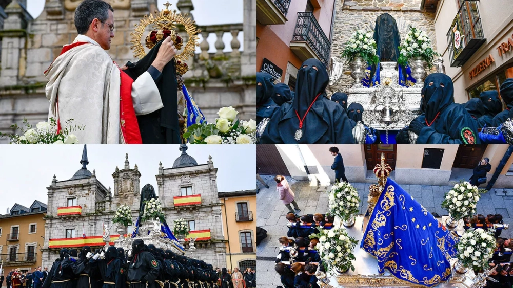 Así pudieron desfilar los pasos del Santísimo Sacramento y La Encina, hasta el encuentro pascual que se produjo en la plaza del Ayuntamiento, donde la Virgen de la Encina se quitó el luto al recibir la noticia de la resurrección. En ese momento tronaron las campanas en una de las últimas citas destacadas de la Semana Santa ponferradina.