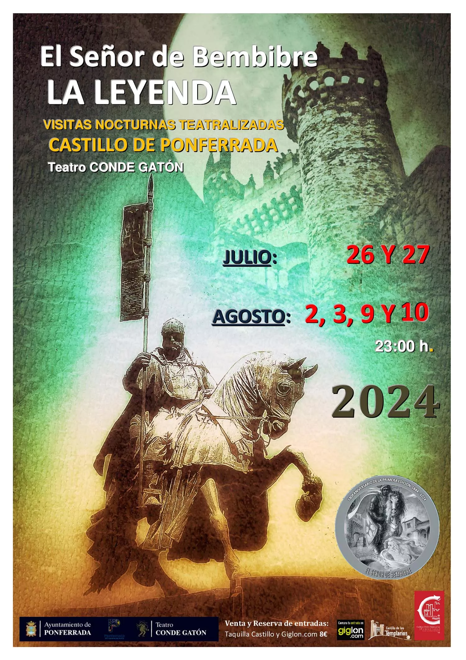 Las noches del 26 y 27 de julio y del 2,3,9 y 10 de agosto se podrá disfrutar de la representación de la compañía de teatro Conde Gatón "El Señor de Bembibre: La Leyenda". Esta visita, en el "incomparable marco" del Castillo de los Templarios, adentra a sus visitantes en un "territorio de sombras, entre las brumas del romanticismo de Enrique Gil y Carrasco". Se revive así la escenificación de esta novela, el espectáculo escenográfico de luces, sonido y vestuario, transmitiendo a los asistentes al corazón de una leyenda donde el espíritu de los caballeros templarios convierte a Ponferrada en la capital de la literatura y de la historia.