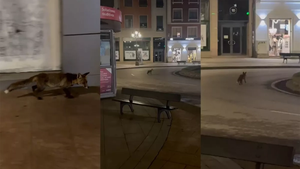 La fauna que aparece en Ponferrada no deja de sorprender. Si hace un año, un oso recorría las calles de la capital berciana, esta noche ha sido un zorro el que ha decidido campar a sus anchas por la Plaza Julio Lazúrtegui
