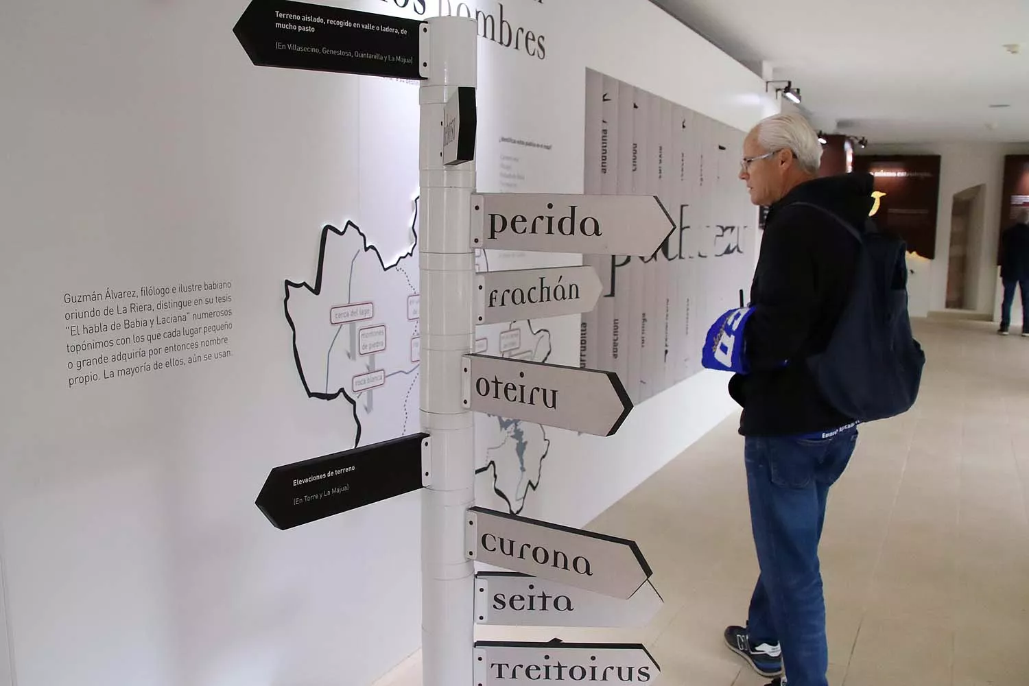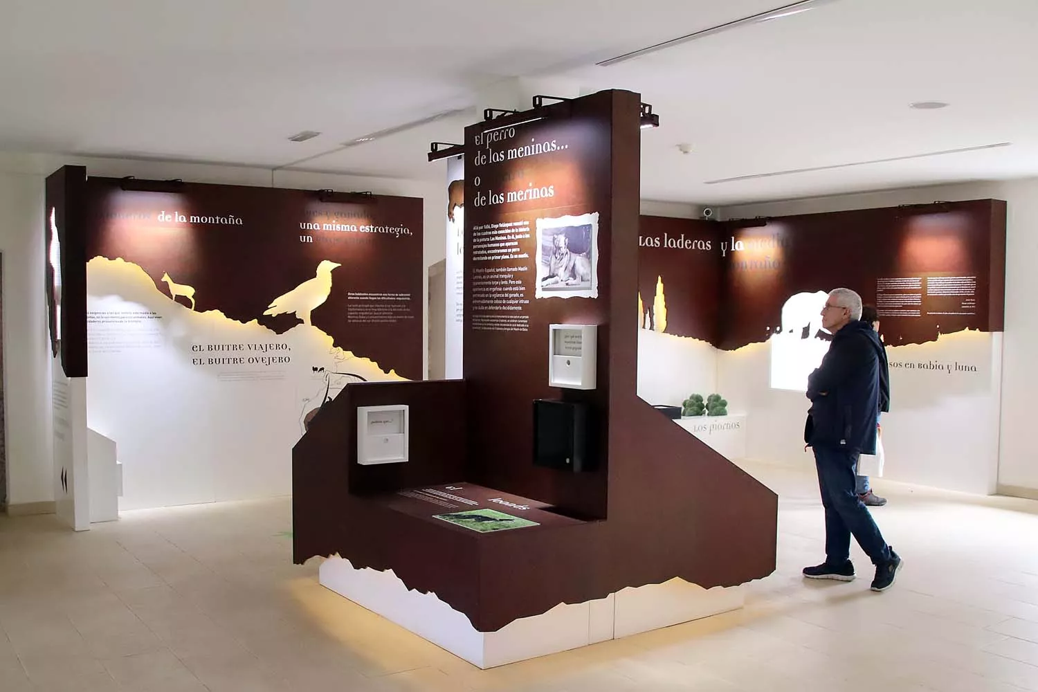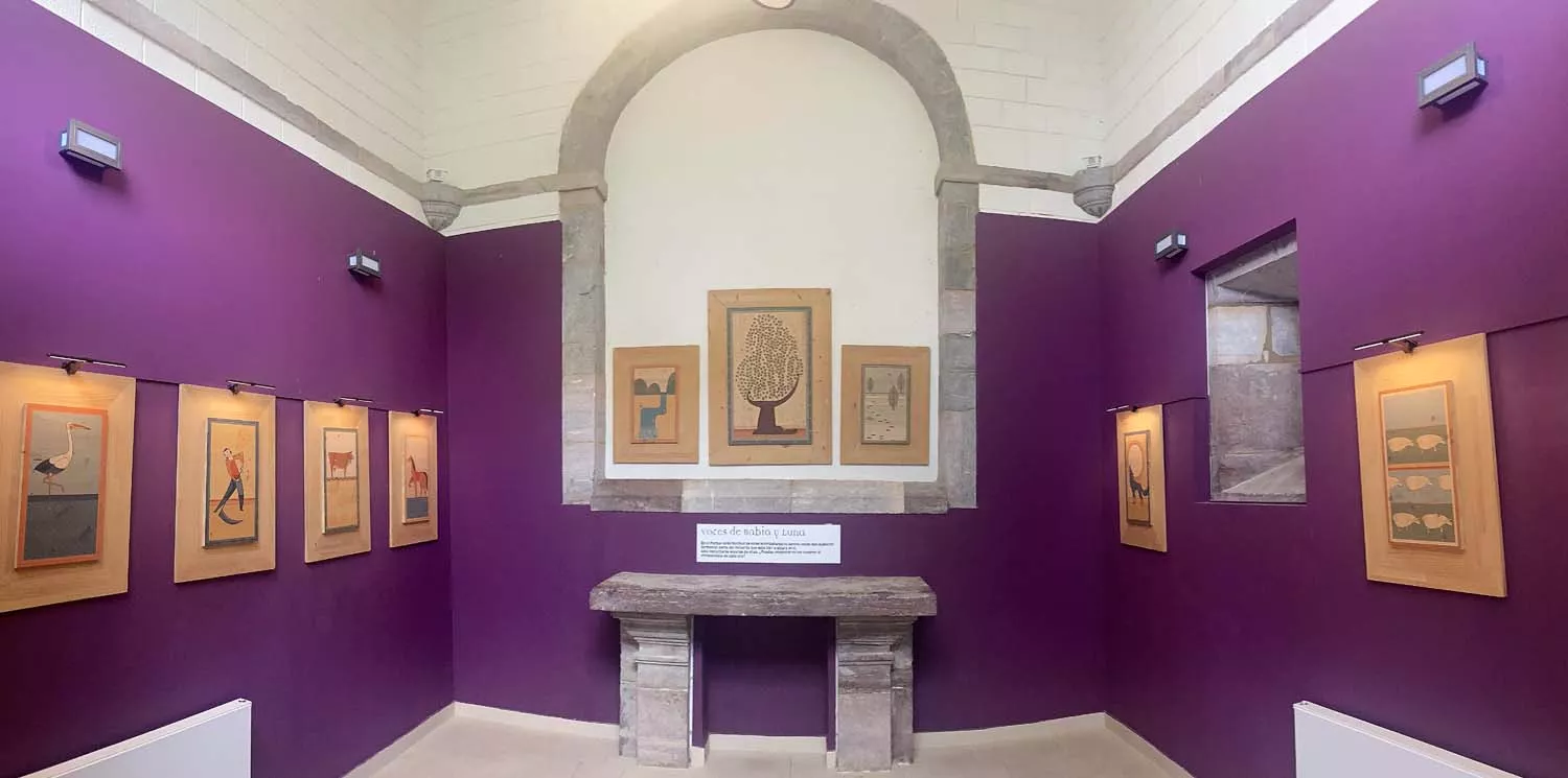 La capilla, erigida en otro punto del patio ajardinado, acoge una selección de sonidos de animales que complementa lo visto y aprendido en la exposición principal, la que se reparte por las estancias del Palacio para mostrar de una manera fácil de asimilar, detalla García-Miranda, los valores naturales humanos y culturales de la zona, tales como el patxuezo -asturleonés occidental-, los usos ganaderos, especialmente la trashumancia de ovejas merinas en verano desde los invernales del sur, o las razas de ganado y animales que se crían en estos pastos (merinas, caballo hispano bretón, la vaca mantequera leonesa, el mastín o el carea).