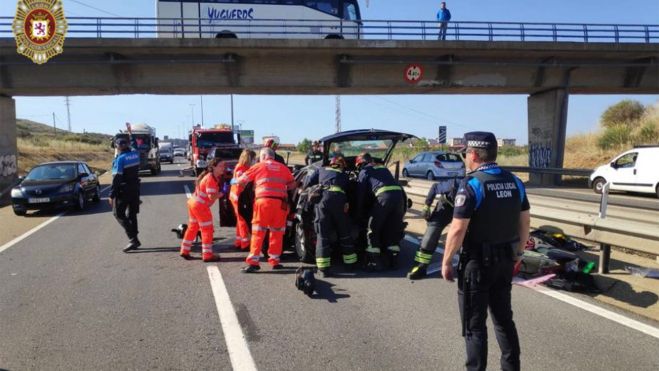 Desde el Centro de Emergencias de Castilla y León se dio aviso del incidente a la Policía Local de León, a la Guardia Civil de Tráfico de León y a Emergencias Sanitarias - Sacyl.