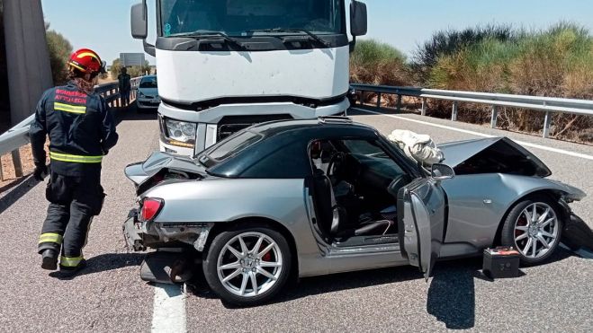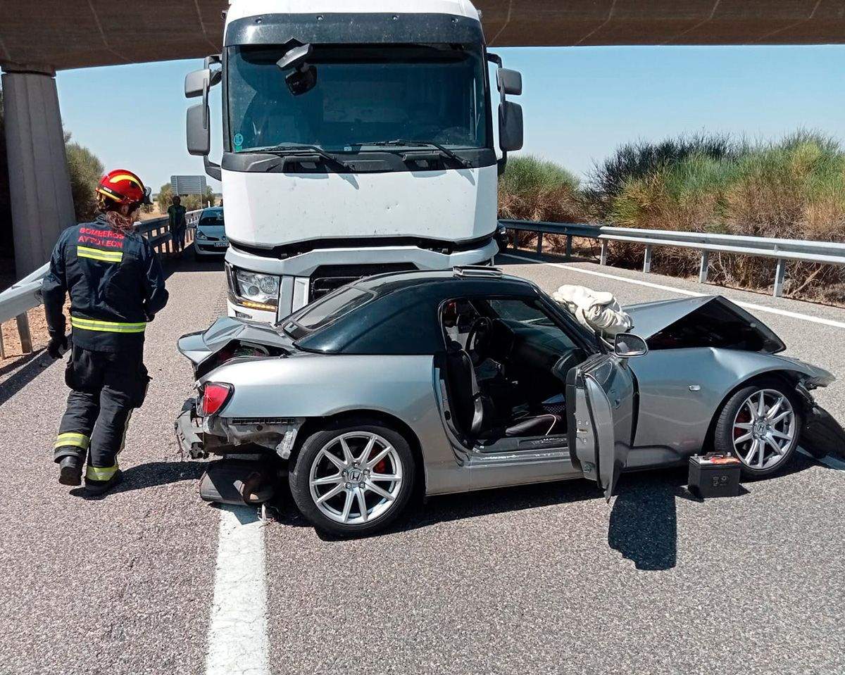 Un turismo y un camión de alto tonelaje han colisionado este lunes en la A 231 a la altura de El Burgo Ranero, concretamente en el kilómetro 32 pasadas las 13:00 horas de este mediodía. Debido al fuerte golpe, el ocupante del coche resultó herido y atrapado en el interior del vehículo, por lo que tuvo que ser rescatado del interior.