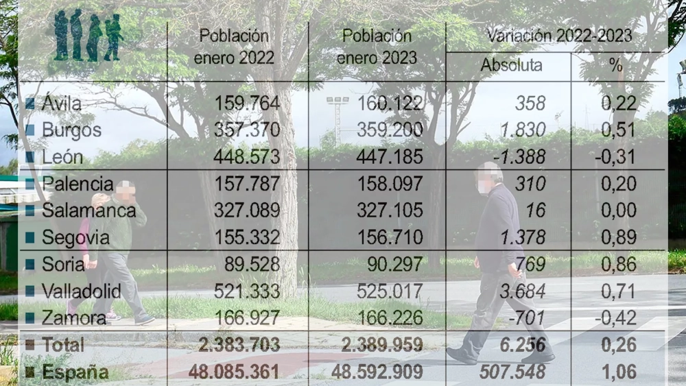 De esta manera, se confirma que en la provincia de León la tendecia no es la misma que en el resto de provincias, a excepción de Zamora, pues en la Comunidad se registró un crecimiento del 0,26%, sumando un total de 6.256 personas más que en 2022.