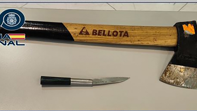 Además del hacha utilizada para el asalto, se le ha intervenido al detenido una navaja de grandes dimensiones.