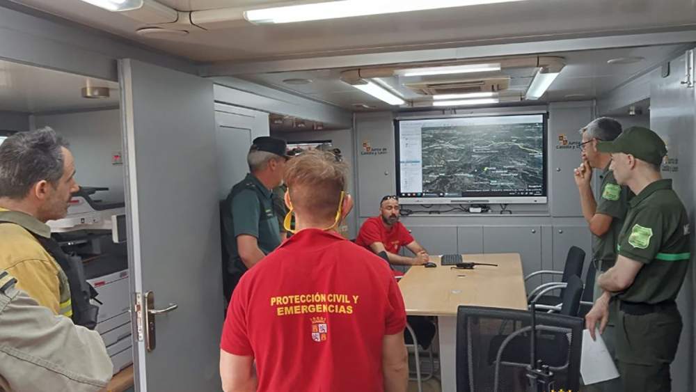 El Puesto de Mando Avanzado, continúa desplegado en la base de incendios de la Junta de Castilla y León de Rabanal del Camino, muy próxima a la zona de búsqueda.