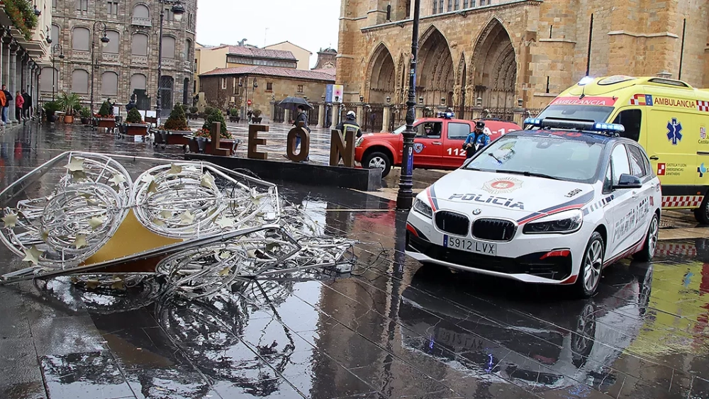 Un varón de 47 años de edad resultó herido leve en la mañana de este sábado tras ser golpeado por el cableado de la iluminación navideña, desprendido por las fuertes rachas de viento, en la confluencia de la calle Ancha con la plaza de Regla, en León capital.