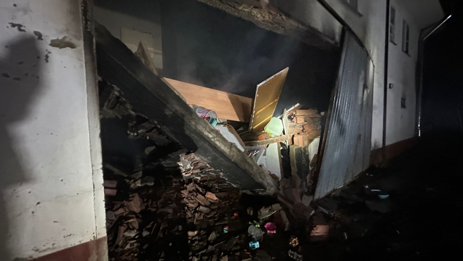 A la llegada estaba la vivienda envuelta en llamas con importante carga térmica y produciéndose explosiones. Una vez controlado se produjo el derrumbe del forjado del primer piso, aunque sin lamentar daños personales. Participaron en la extinción dos vehículos autobombas, un vehículo escalera y nueve efectivos.