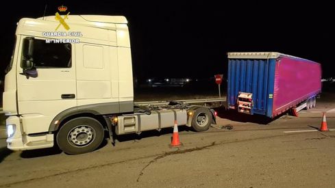 Acto seguido, y una vez detenido un camión, mientras otros compañeros informaban al conductor, supuestamente desengancharon el remolque de la cabeza tractora, causando daños en los elementos de enganche, sujeción y seguridad del vehículo, causando además de los daños, un grave riesgo para la circulación obstaculizando la vía pública.