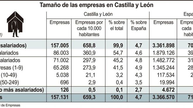 El estudio precisa que Castilla y León cuenta con el 4,7 por ciento de las empresas de España (157.131 con datos Dirce 2021), pero sólo con el 3,5 por ciento de las actividades (696) de 50 a 249 empleados, y apenas el 2,7 por ciento de las grandes compañías (126) con más de 250 trabajadores.