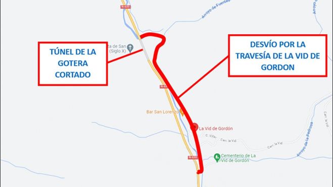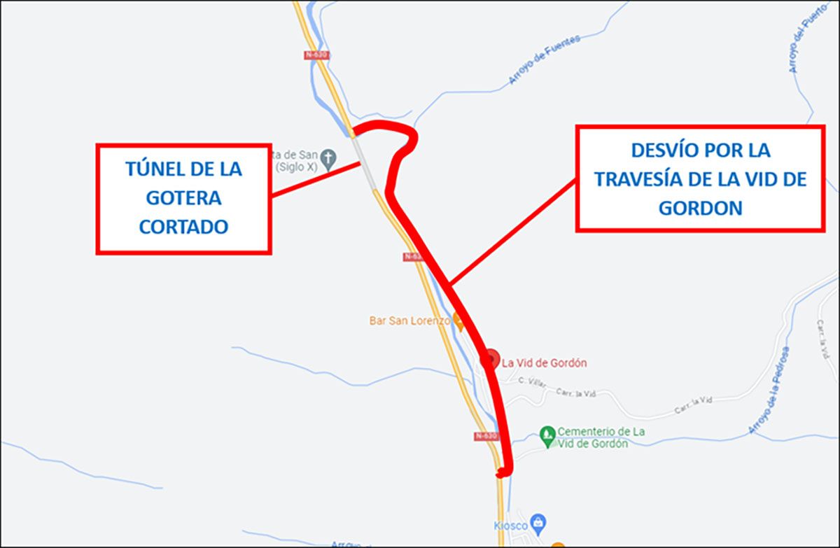 Para garantizar la seguridad tanto de los usuarios de la carretera como de los trabajadores durante la ejecución de las obras, será necesario realizar un corte total de la calzada en la citada carretera en el área de obras, que incluye el túnel de La Gotera. Este corte afectará al tramo comprendido entre los km 103,750 y el 105,400.