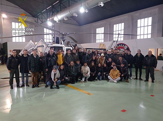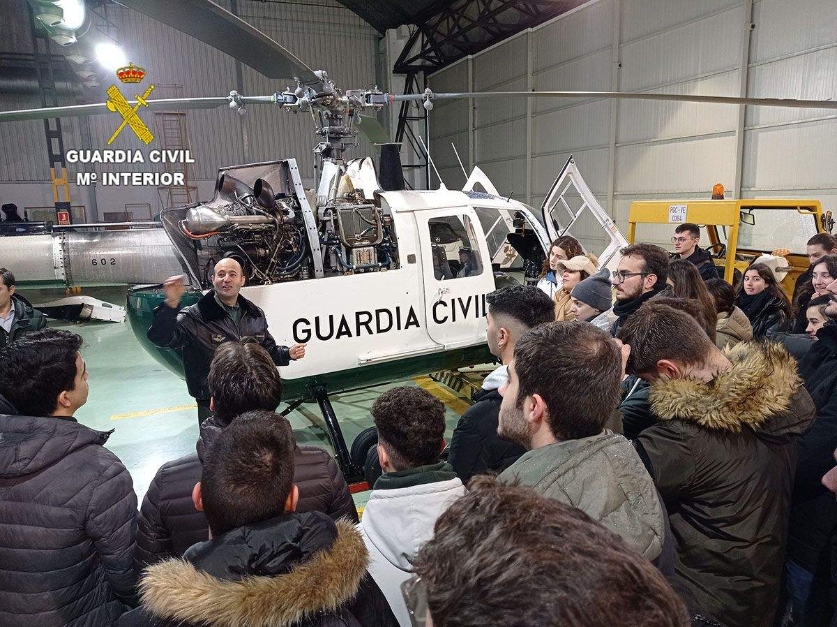 Foto: Guardia CivilA su llegada fueron recibidos por el Jefe de la Unidad que realizó una breve exposición sobre las misiones y características del Servicio Aéreo de la Guardia Civil y, de manera específica, de aquellas que afectan particularmente a la Unidad con sede en León, como son los rescates en montaña, las búsquedas de personas desaparecidas y la vigilancia de la seguridad ciudadana y de la normativa medioambiental.