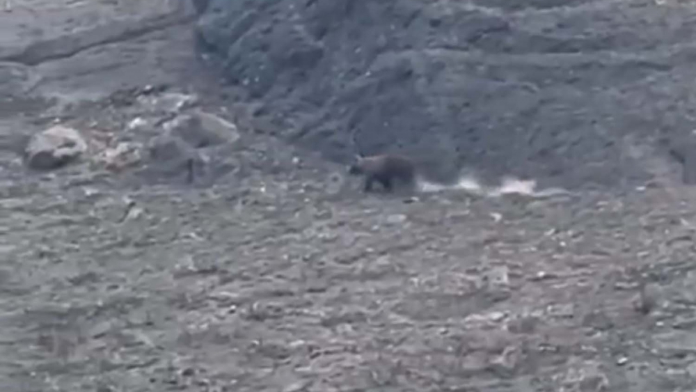 La escena ilustra la difícil situación a la que se enfrentan los animales tras los incendios, que no solo destruyen el paisaje natural, sino que también obligan a especies emblemáticas como el oso pardo a desplazarse y reubicarse en entornos cada vez más reducidos.