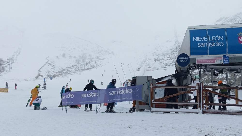 La estación de esquí de San Isidro (Puebla de Lillo, León) inicia el fin de semana de prenavideño con ocho kilómetros esquiables y otras tantas pistas abiertas al público, mientras que la de Valle Laciana-Leitariegos, en Villablino, permanece cerrada por falta de nieve.