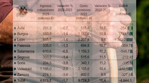 Así, el déficit del sistema estuvo encabezado por la provincia leonesa, donde los gastos en pensiones superaron a los ingresos por cotizaciones sociales, en 1.362,24 millones de euros, seguida por Valladolid, con un agujero de 910,53 millones, y Burgos, con otro de 733,09. Asimismo, el déficit en Salamanca se situó en los 548,7 millones de euros; en Palencia, en 359,75; en Zamora, en 327,92; en Ávila, en 254,24; en Segovia, en 212,39; y en Soria, en 135,65.