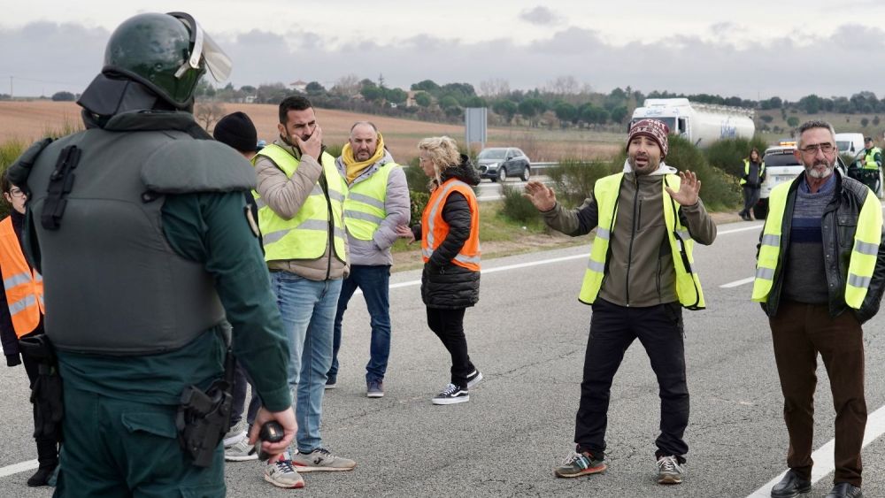 Aunque con menos intensidad que en la jornada de ayer, agricultores y ganaderos de Castilla y León continuaron hoy con sus protestas, aunque de forma desigual en las distintas provincias, pero repitiendo los cortes de tráfico en vías importantes como la A-62, a la altura de Ciudad Rodrigo (Salamanca), en la A-1, en Villagonzalo-Pedernales (Burgos) y en la A-6 en La Bañeza (León). En esta provincia, por la tarde, también se llegó a bloquear el acceso al polígono industrial de Villadangos del Páramo.