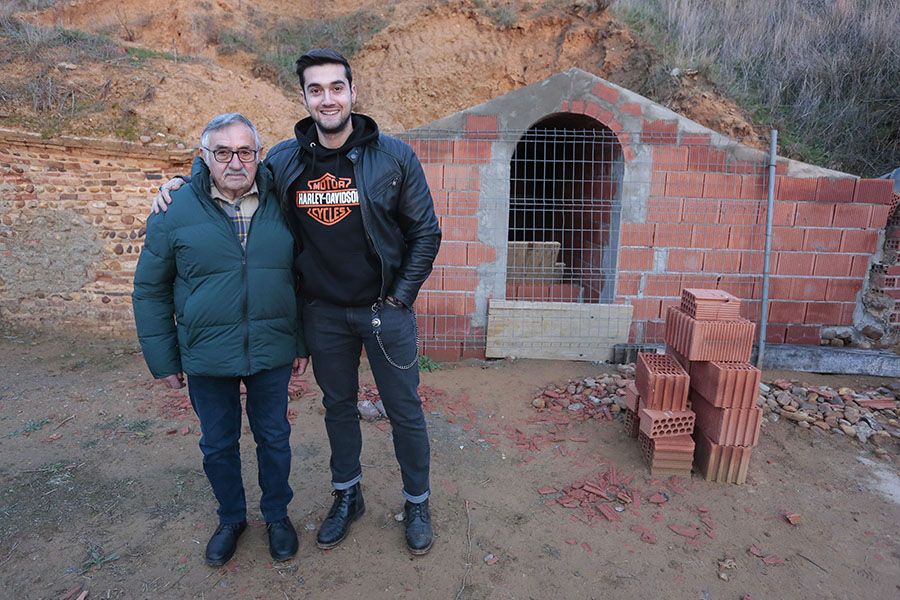 Claudiano Pellitero y su nieto Saúl Coque, rehabilitan una bodega familiar en el municipio leonés de Valdevimbre“Estaba caída entera. Ya antes, cuando veníamos hasta aquí a tomar un café y nos acercábamos, veíamos que no había puerta y que todo estaba derrumbado, pero cuando entramos lo comprobamos”, recuerdan. Por eso, a pesar de que su primera idea era ponerse manos a la obra y reconstruir la bodega entre los dos ya que pertenecen a una familia que “controla de albañilería”, se dieron cuenta de que “hacía falta mucha maquinaria” de la que no disponían, lo que les llevó a tener que contratar a una empresa externa para “la obra más gorda”, aunque “cosas como la electricidad o los suelos” lo harán ellos.