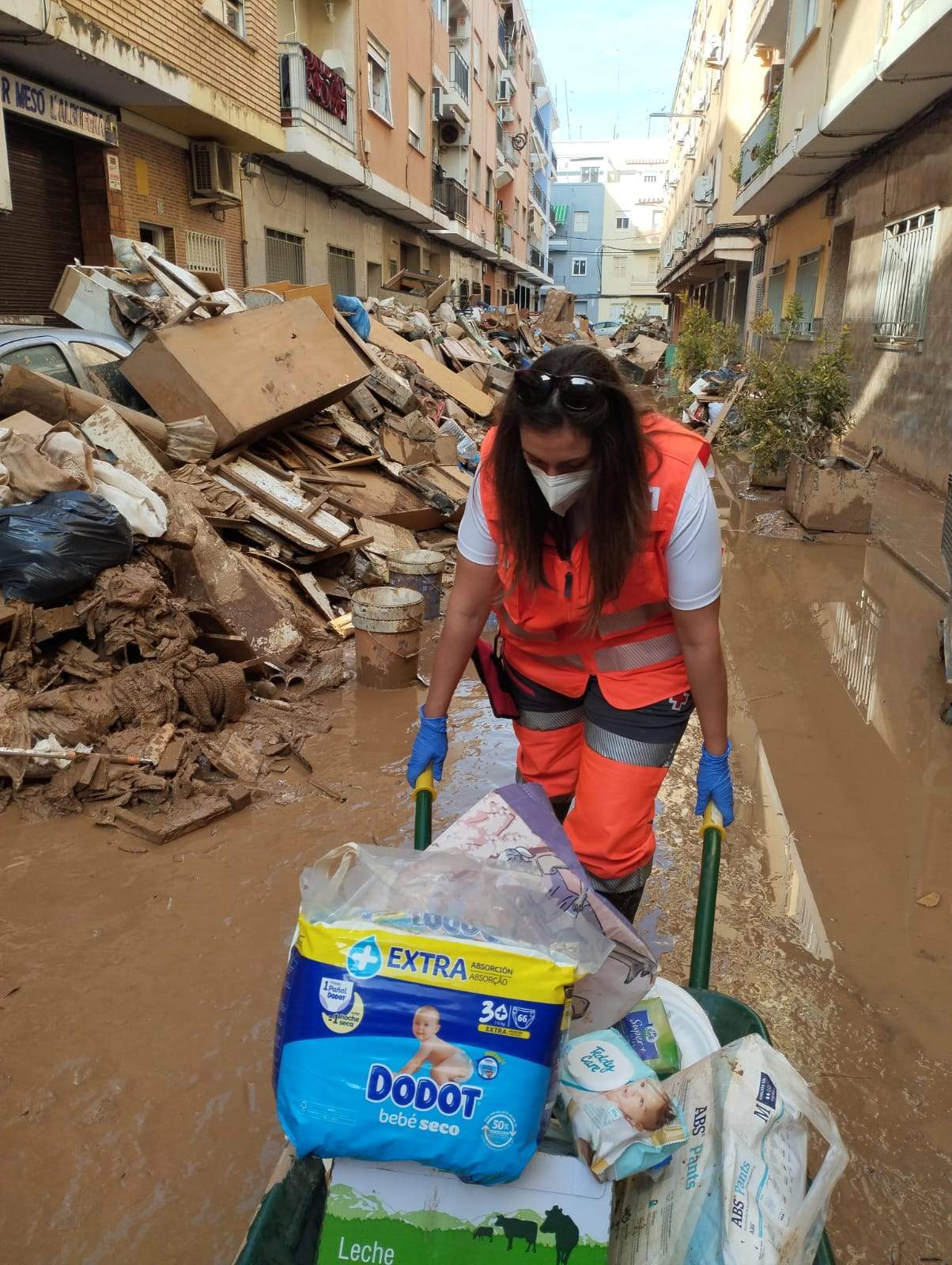 “También salimos a las calles, hacíamos lotes de alimentos y acudíamos a domicilios en Catarroja", explica mientras asegura que es “indescriptible” explicar la situación de las calles, “son intransitables. Nosotros podíamos entrar porque vamos en vehículos de Cruz Roja”, puntualiza.