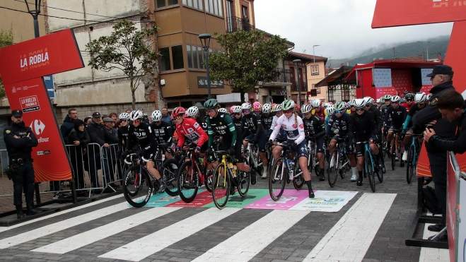 La localidad leonesa de La Robla acogió en la mañana de este sábado el inicio de la séptima y última etapa de la Vuelta Femenina by Carrefour, en la que tomaron la salida 125 corredoras para afrontar 152,6 kilómetros con tres puertos de montaña y un desnivel acumulado de 2.800 metros.