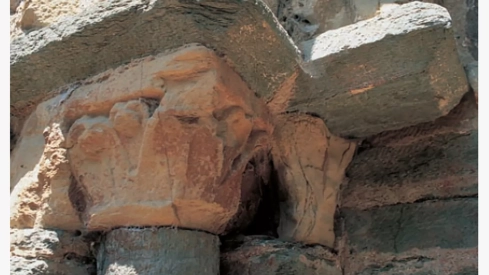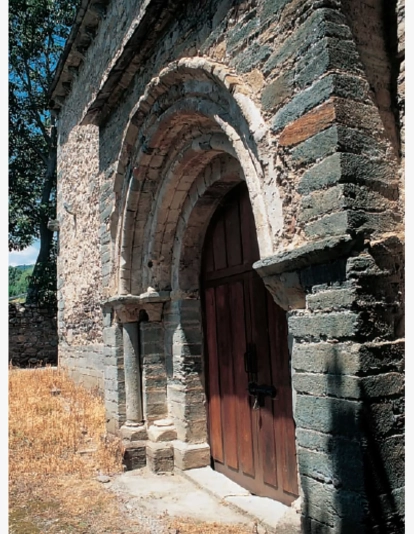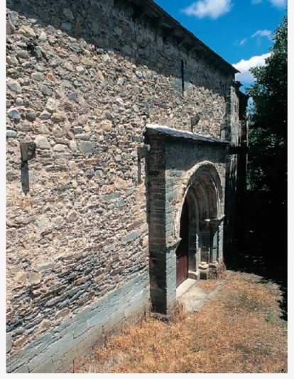 También cabe destacar la cabecera del templo con una capilla rectangular rematada por un ábside semicircular cubierto con un tramo de bóveda de cañón seguido de un casquete esférico. Además, el ábside se encuentra abierto en tres ventanales tipo portada, con arquivolta de baquetón y guardapolvos decorada mediante el conocido ‘taqueado jaqués’. Por último, a esta iglesia se le añadió una capilla y una sacristía, posiblemente en el siglo XVIII.