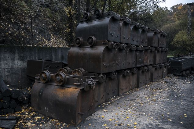 Varios vagones de carbón, amontonados a la entrada del pozo. Foto: Mario de la Torre“Antes estuve en Campomanes Hermanos, también en el pueblo de Santa Cruz, vine a Salgueiro, después a Brañuelas y luego de vuelta aquí”, recuerda Daniel, que lamenta la situación en la que quedarán otros compañeros “por no haberles dejado una opción de futuro mejor”. Es el último de una saga de mineros. Sus abuelos, su abuela, su padre, sus tíos y sus primos también trabajaron en la mina. “Es una pena que se han cargado una comarca por malas decisiones o intereses que no alcanzamos a comprender” añade.