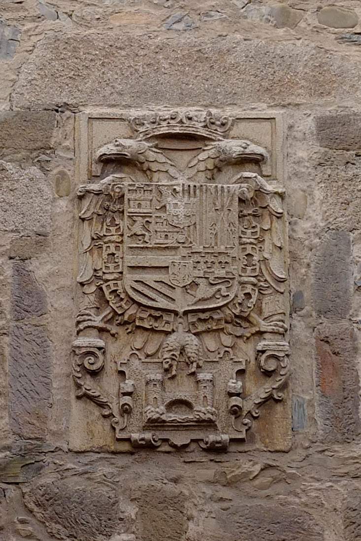 En el cuerpo de la torre, en sus dos caras principales, se ubican dos escudos reales con las armas de Felipe II, esculpidos por el cantero Juan de la Lastra en 1597.